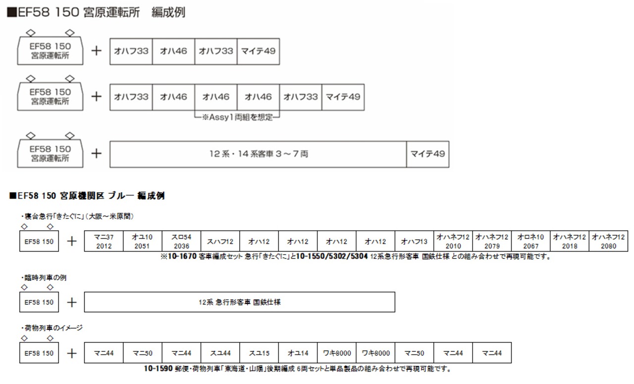 ・付属品…ヘッドマーク:「すきやねん国鉄」「EF58&マイテ49」×各1、交換用ナックルカプラー、握り棒、ホイッスル、信号炎管