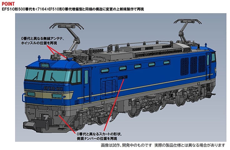 ●EF510形500番代を<7164>EF510形0番代増備型と同様の構造に変更の上新規製作で再現